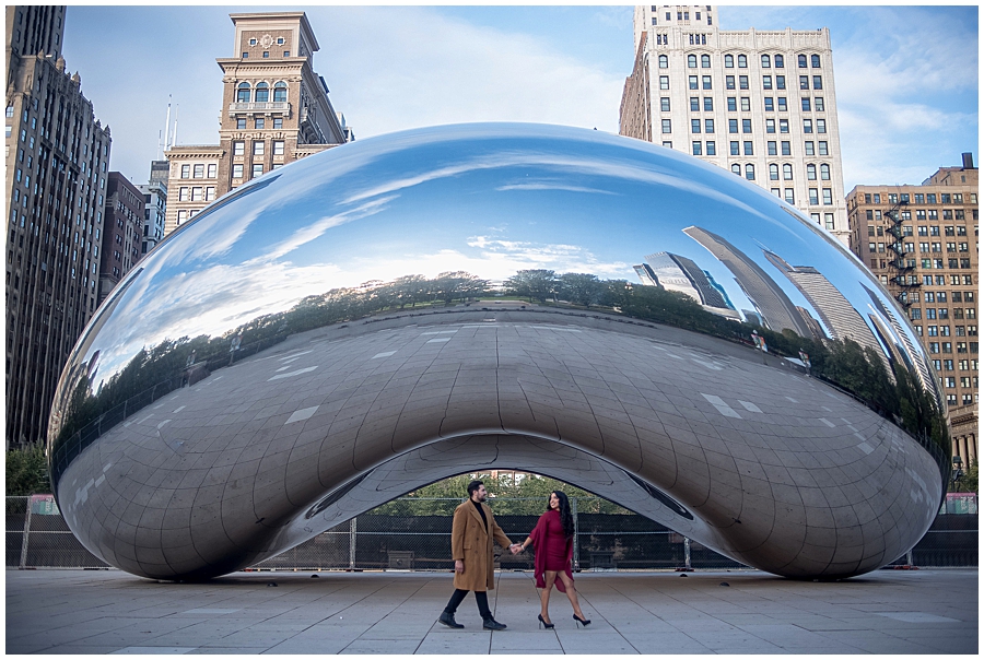 Por eso el punto de reunión para comenzar las fotos de esta linda pareja fue el Cloud Gate de Chicago, mejor conocido como el Bean o Frijol.