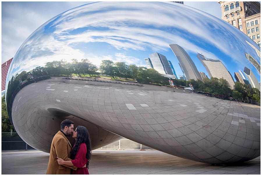 El Cloud Gate (Puerta de Nube) es una figura emblemática de la ciudad de Chicago que muchas parejas hoy en día utilizan para tomarse fotos.