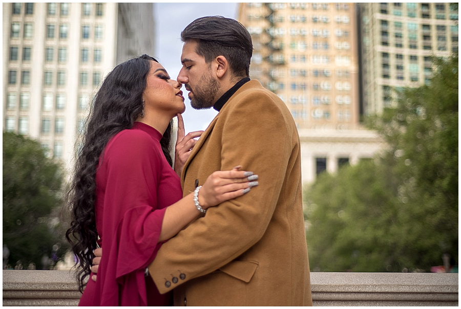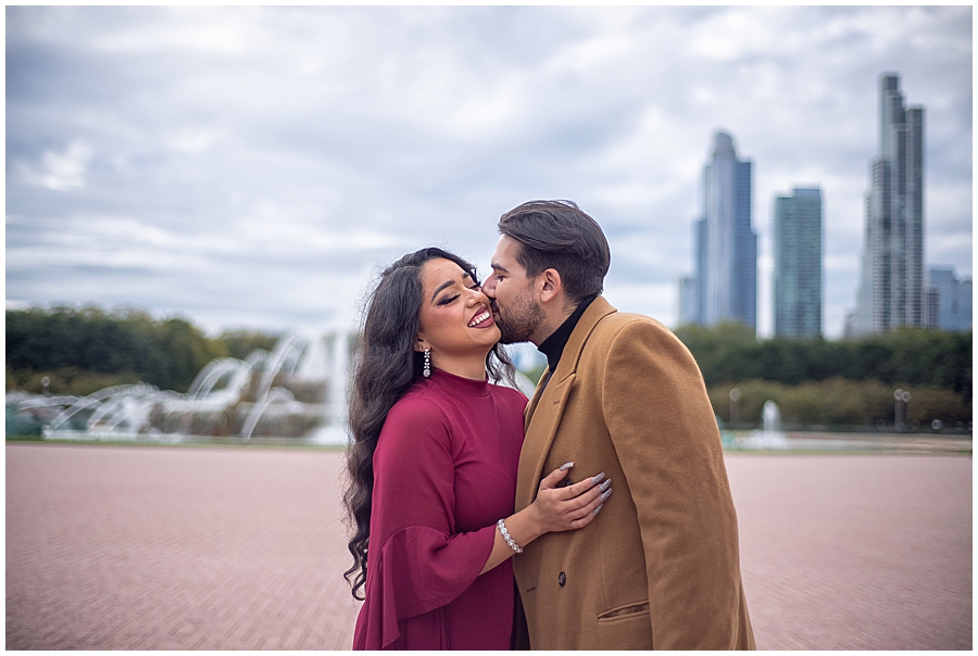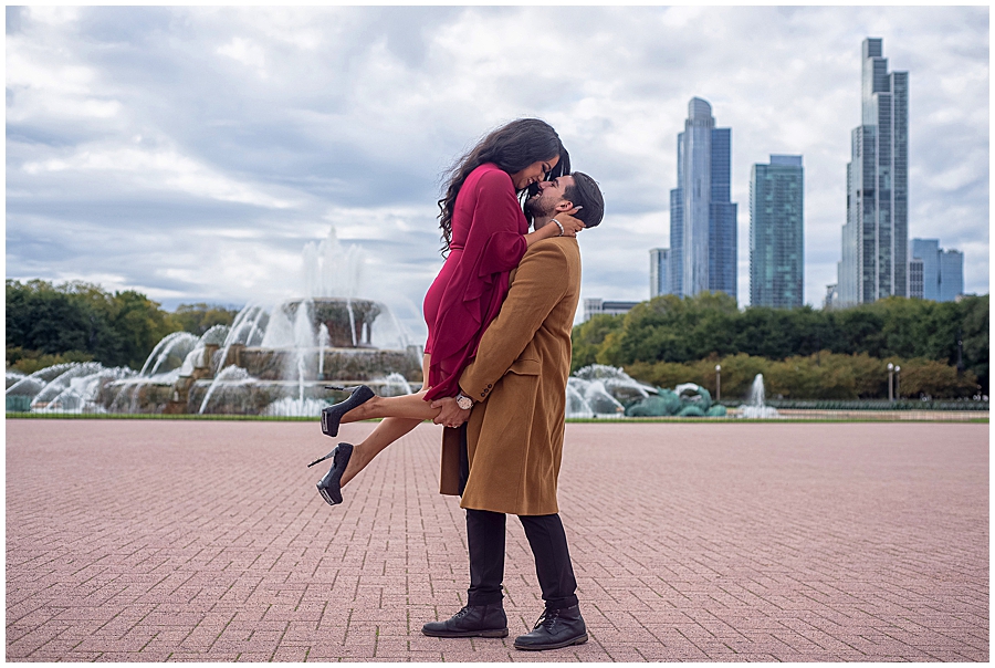 ¿Quieres sorprender a tu futuro cónyuge? Aquí hay una colección de fotos previas a la boda inspiradas en lugares emblemáticos de Chicago como Cloud Gate, El teatro Chicago y Buckingham Fountain.