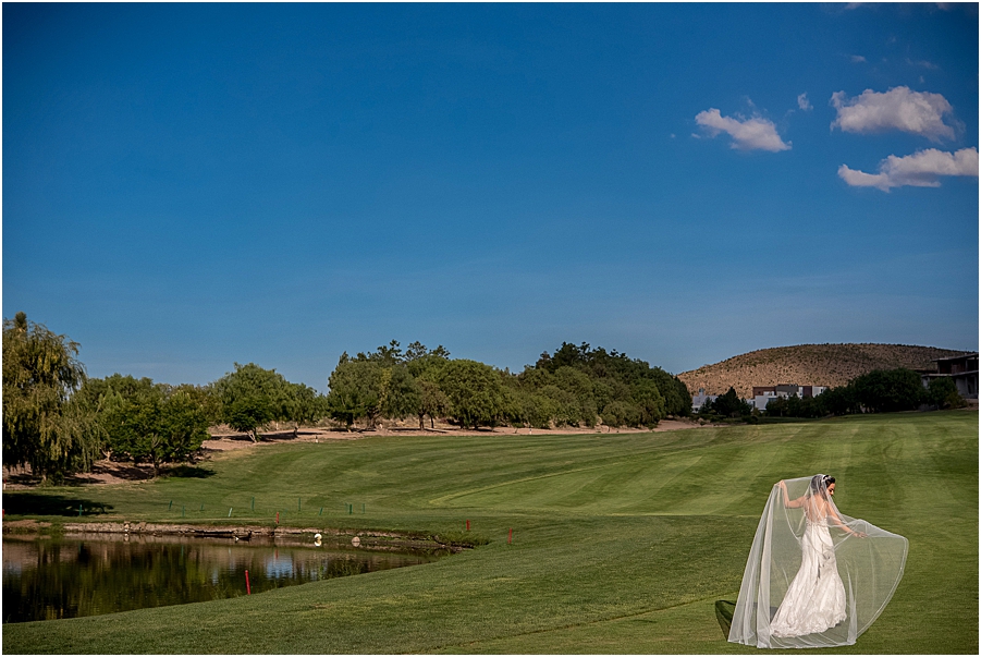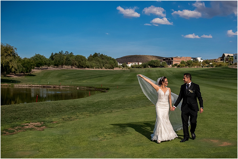 El momento donde los novios logran relajarse y también apreciar como se ven en este gran día es durante la Sesión Fotográfica, en este caso se llevo a cabo en La Loma Golf Club Deportivo de San Luis Potosí.